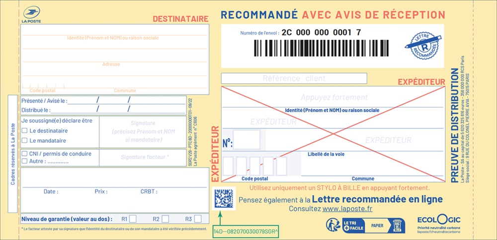 IB1 - Recommandé Bureautique A4 avec AR et avec CB